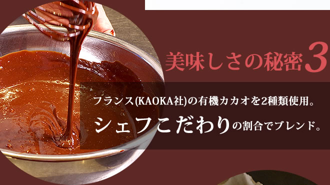 味が濃厚でありながら後味がさっぱりとしたジェラートと、なめらかな食感のチョコレートに厳選した黒ごまを加えた新食感テリーヌ。