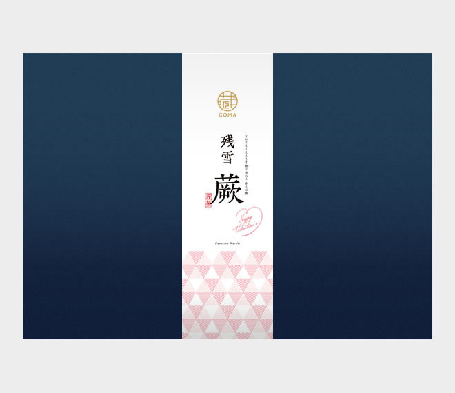実店舗でとてもご好評いただいています「残雪蕨(わらび)」のギフトセットです。パッケージ帯をバレンタイン仕様にしてお届けします。