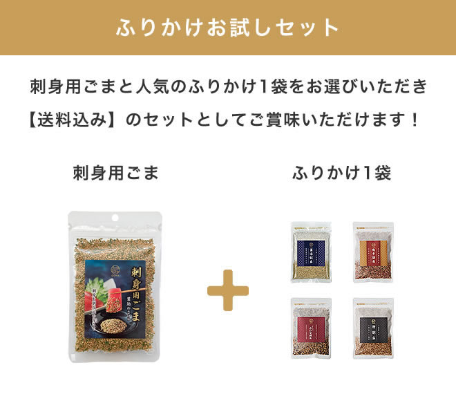 | 備考 | お試し特別セットの「梅干胡麻」「鰹胡麻」「醤油胡麻」「しそ入りあわせ胡麻」について |