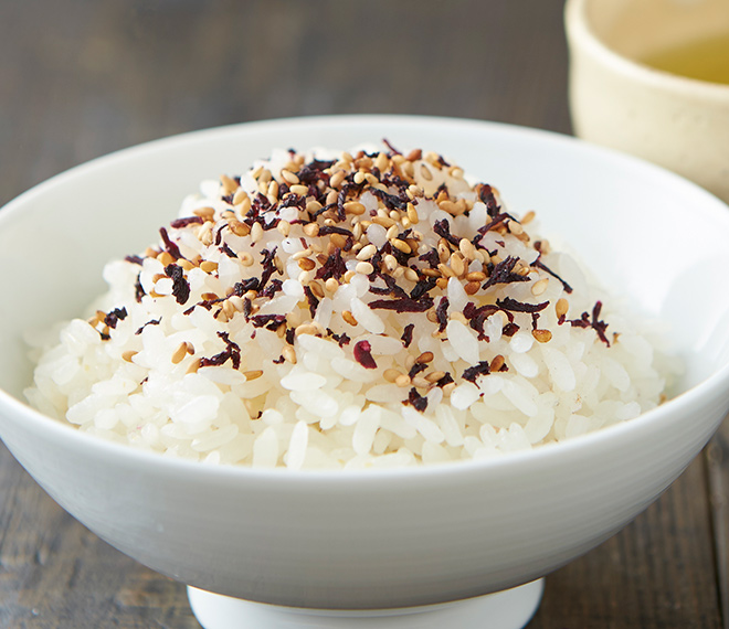 | 原材料名 | いりごま白(国内製造)、乾燥赤しそ(もみしそ、食塩、乳糖、グラニュー糖、赤梅酢)、いりごま金、醤油、鰹節粉末、食塩、粉末醤油/調味料(アミノ酸等)、酸味料、カラメル色素(一部に小麦・大豆・乳成分を含む) |